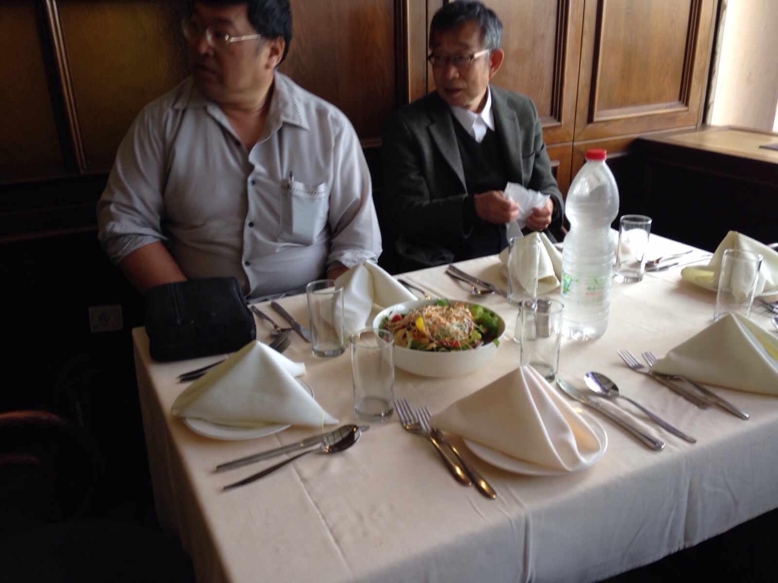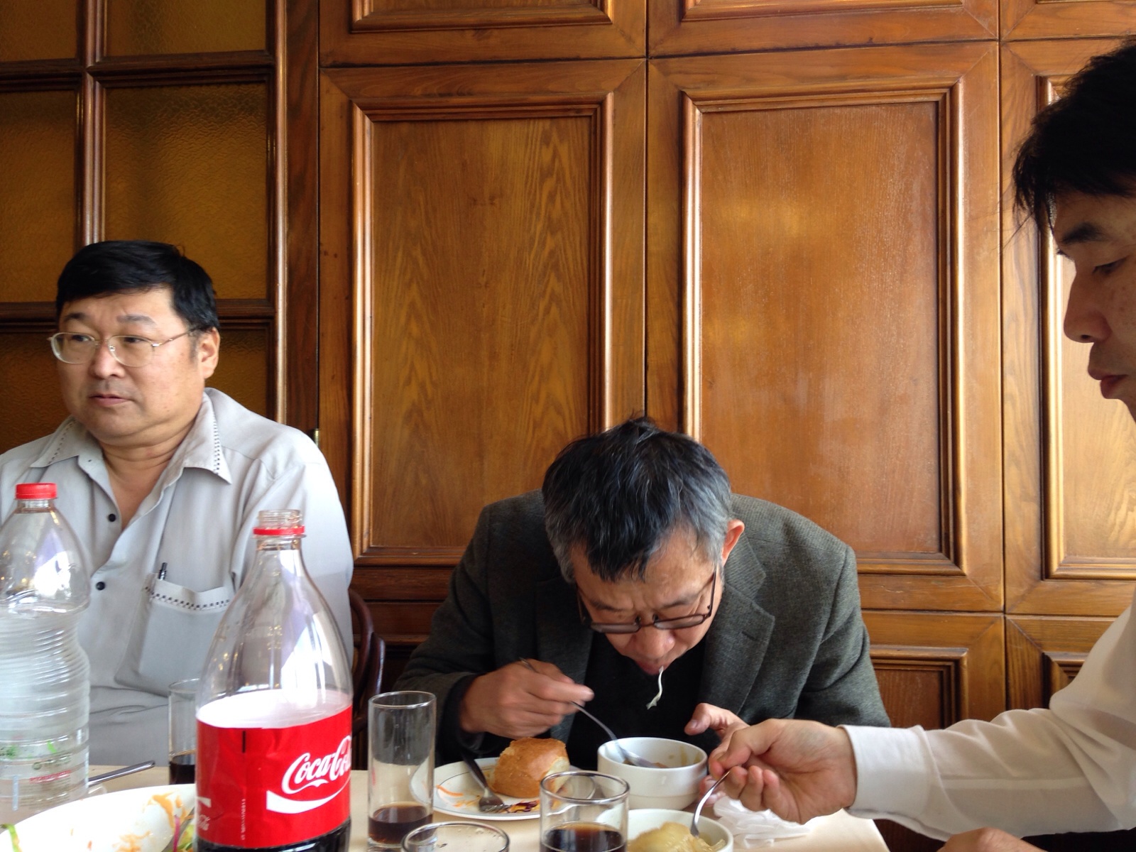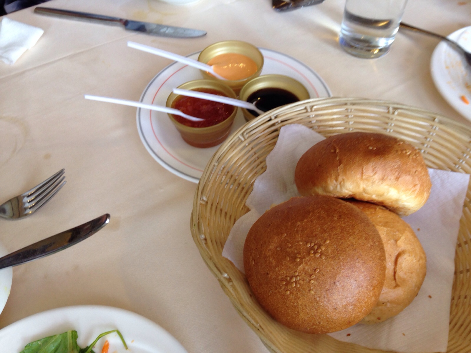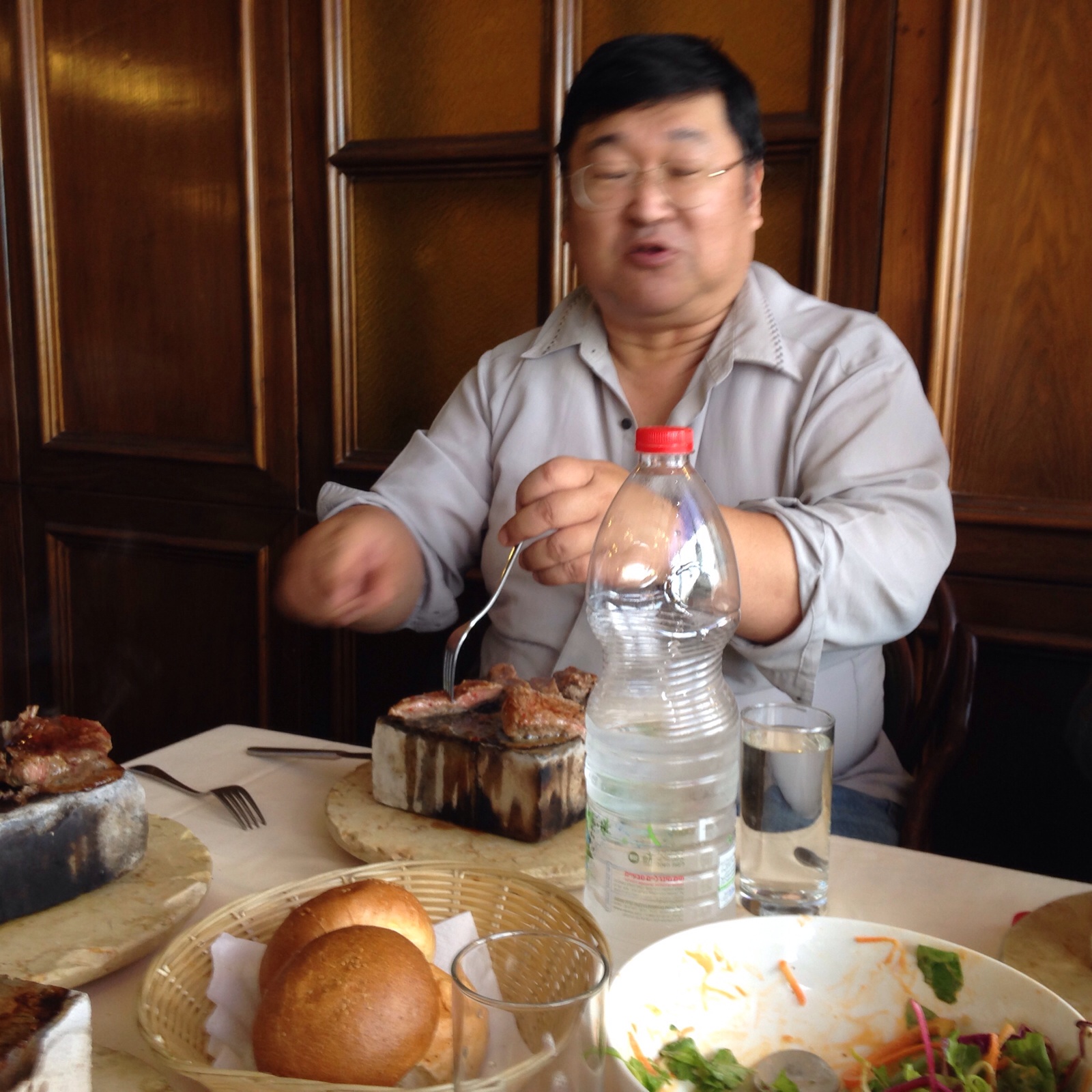 サラダに、パンに、スープのあとは…お肉を待ちながら、食べてます。