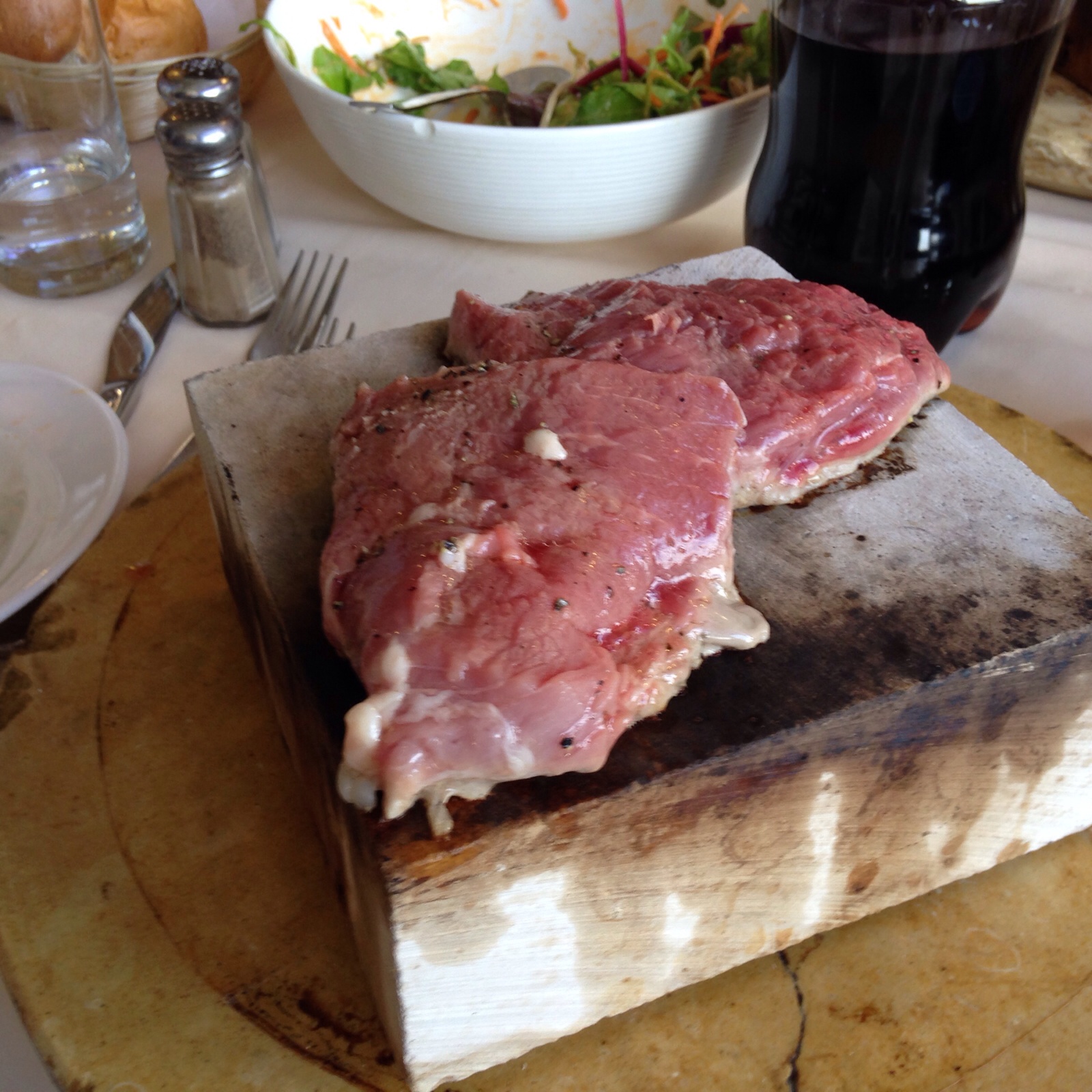 石焼ステーキです。熱い石の上にお肉をのせてます。