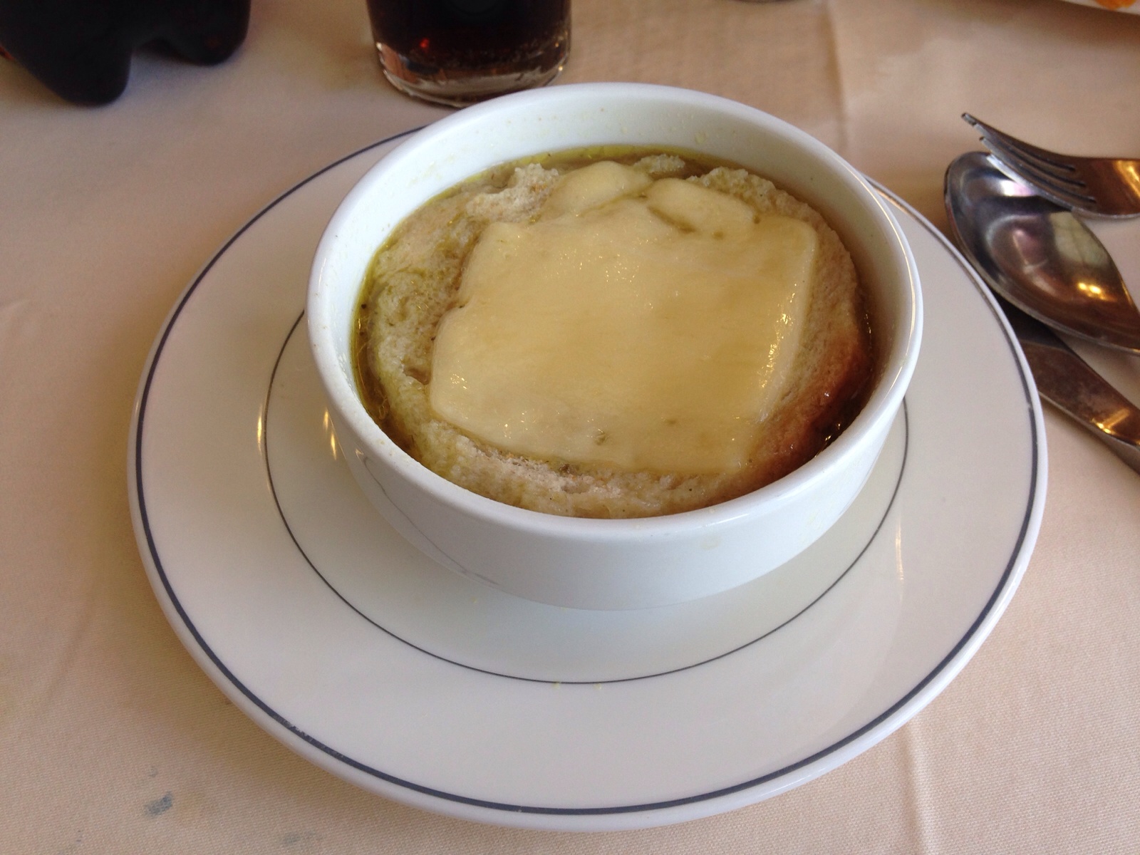 オニオンスープです。こしょうが効いていて、玉ねぎとろとろ、チーズもとろ〜り。