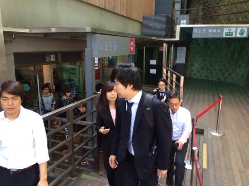 The first car doesn’t come yet, so we try to take a cable car.