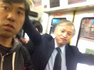 天谷牧師と高円寺行きの電車に乗ります。