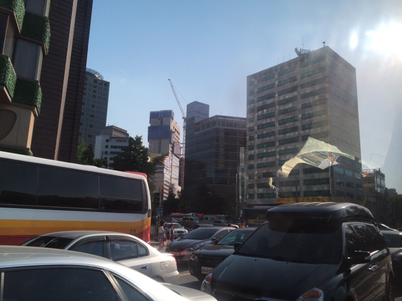 韓国の企業といえばロッテ! 只今、ロッテデパート前を通過中です。
