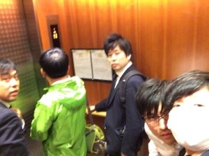 エレベーターでメンバーと合流。それでは、1階の集合場所へ。