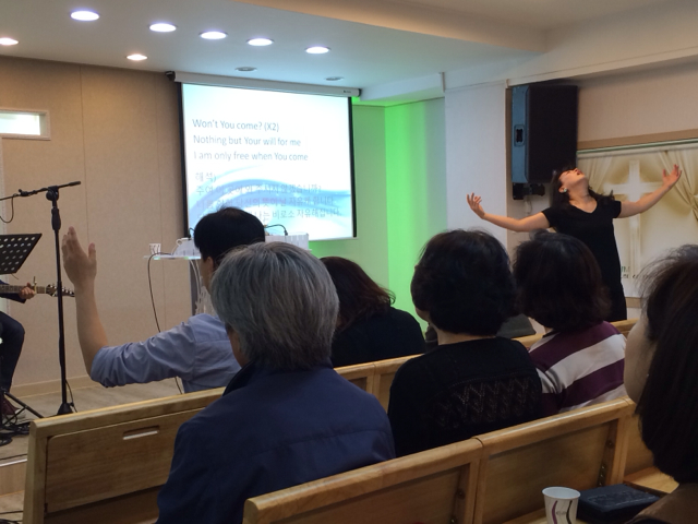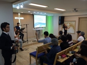 この教会は芸能関係の方々が多いそうです! 賛美リーダーの方もその関係の方でしょうか?