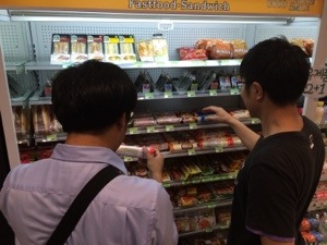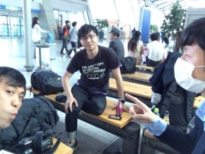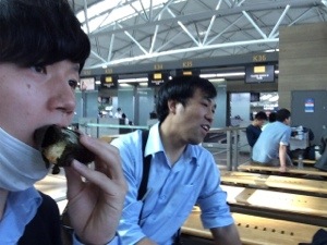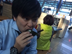 荷物見張り番を交代しまして、ごはん!後発隊がコンビニへ。