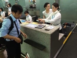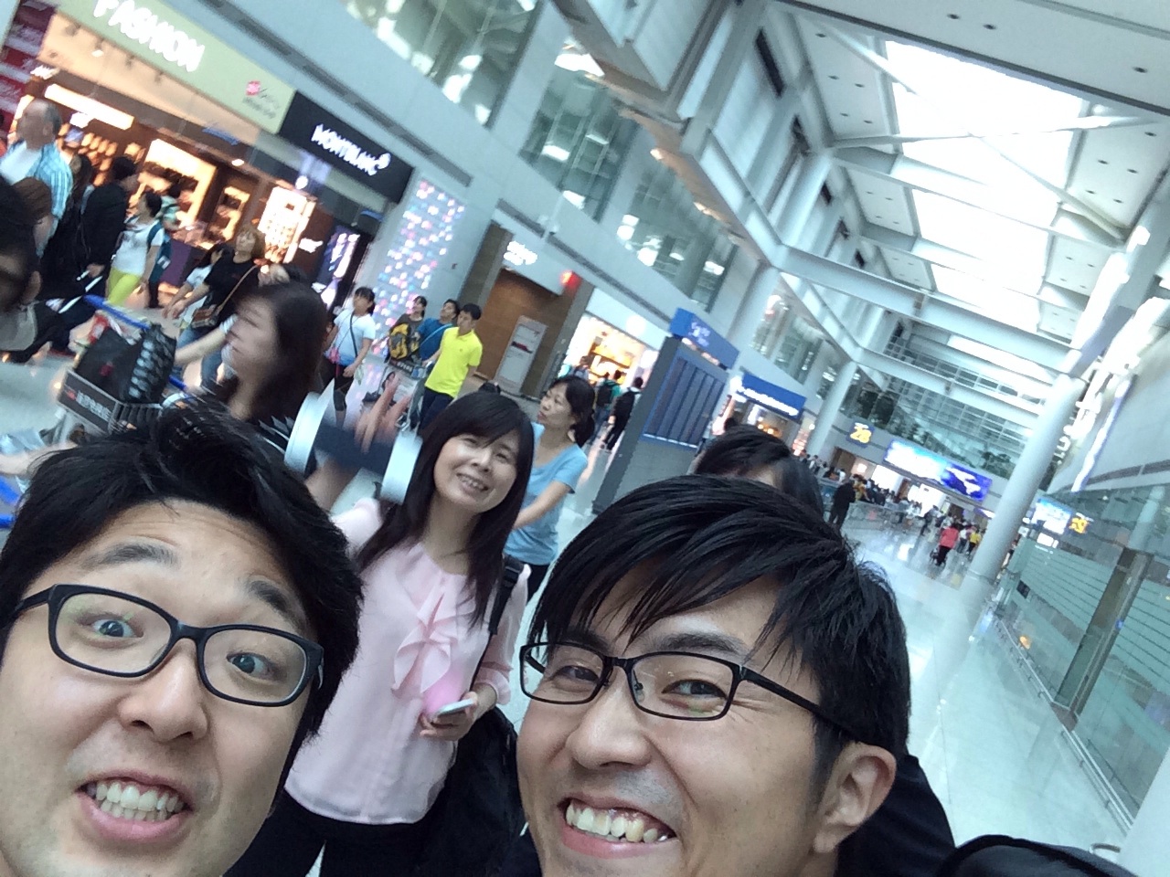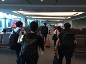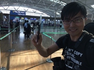 Samuel went ahead and took a place in front of the check-in counter for us.
