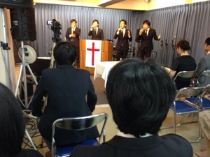 最初に賛美歌を歌います。