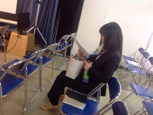 早めに着いてインターネットのお仕事中! 今日は一日会堂です。