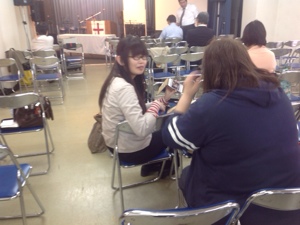 ミッション、アジア部門のなおみ牧師! 何やらiPhoneで何かを見せています。