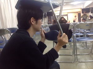 今日は地震のための避難訓練です。 窪田牧師が説明しておられます。