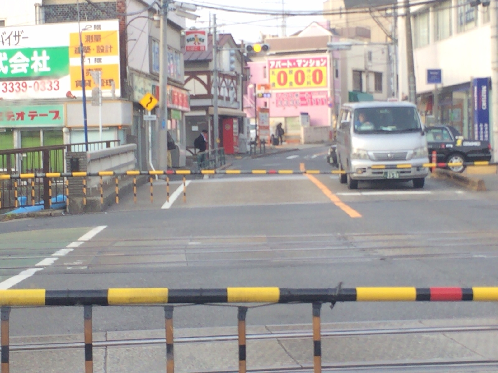 踏切の向こうには藤田さん。