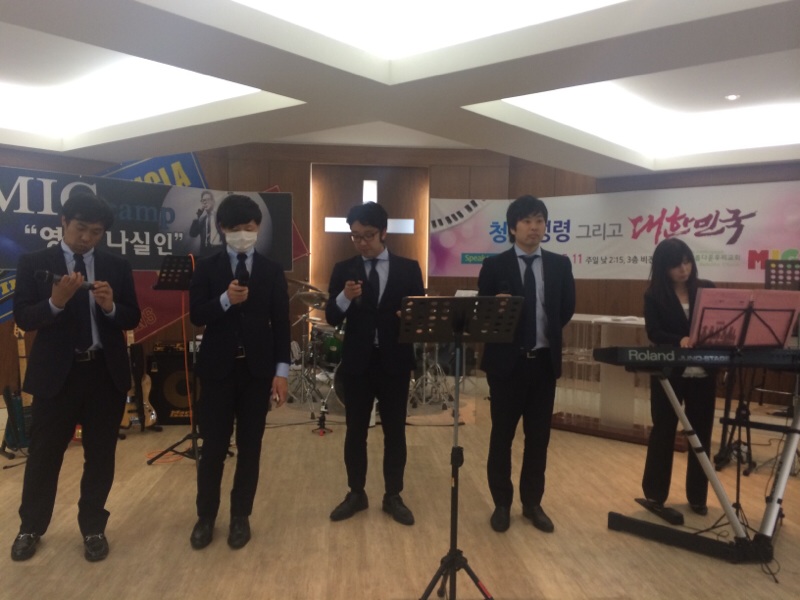 賛美の前にお祈りの時を持ちます。