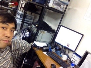 一足先に会堂に着いてインターネットのお仕事中です。入り口ではゴスペルシードの映像作成中!