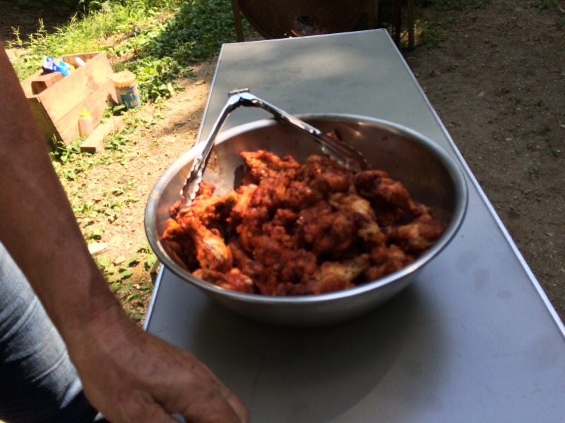 バーベキュータイムです。 スタッフの方々が用意してくれてました。 チキンと焼きそばにソーセージ ヨセフ