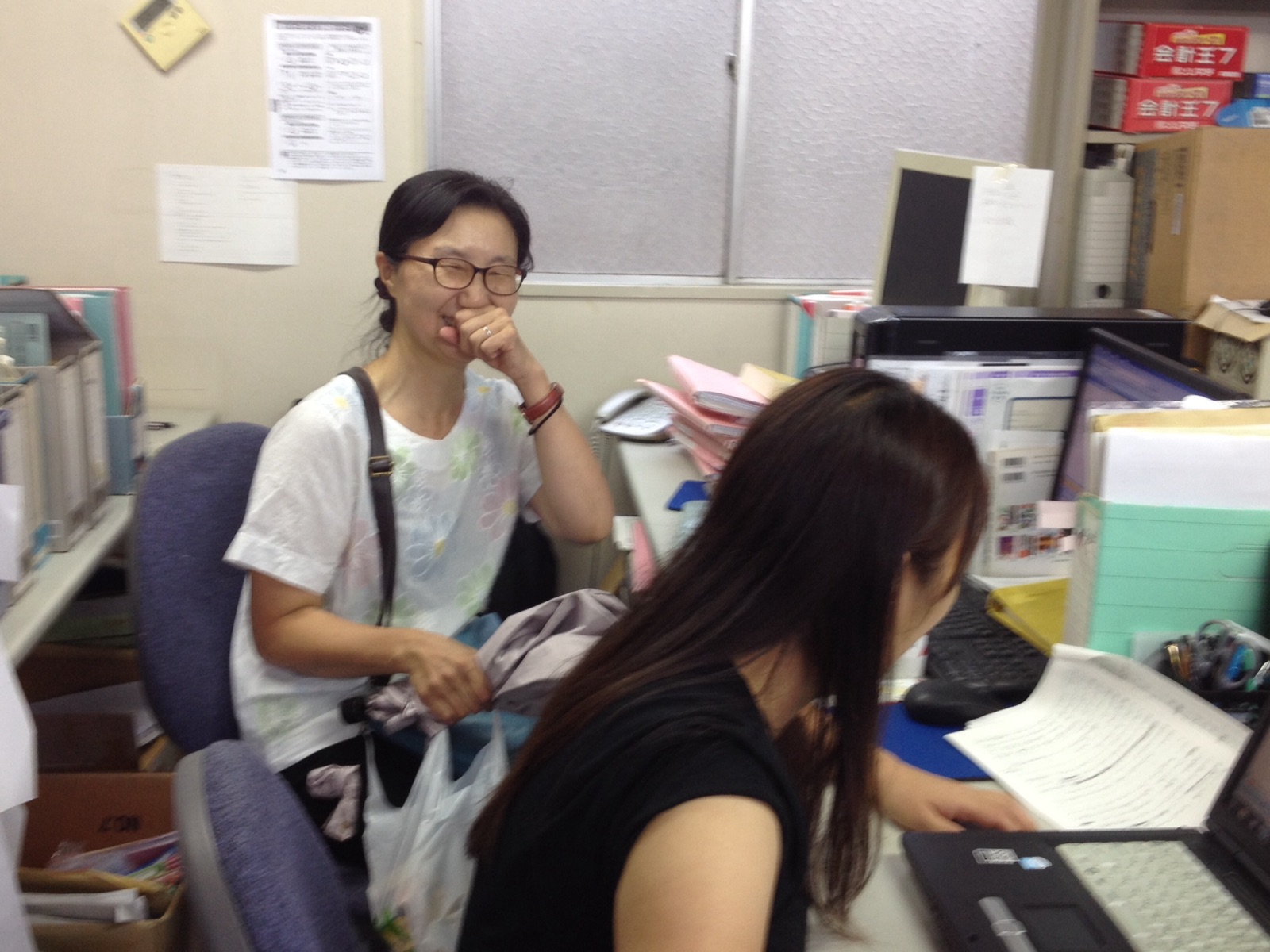 5階まで階段を上がって、小野島さんが来られました。 息が上がってます(笑) Kato