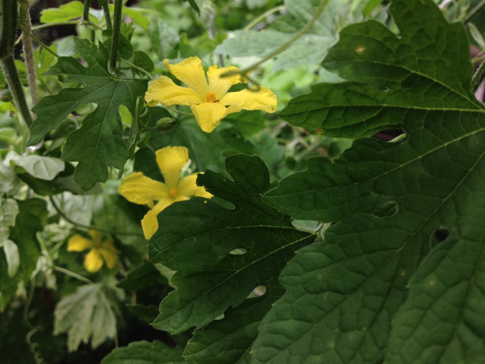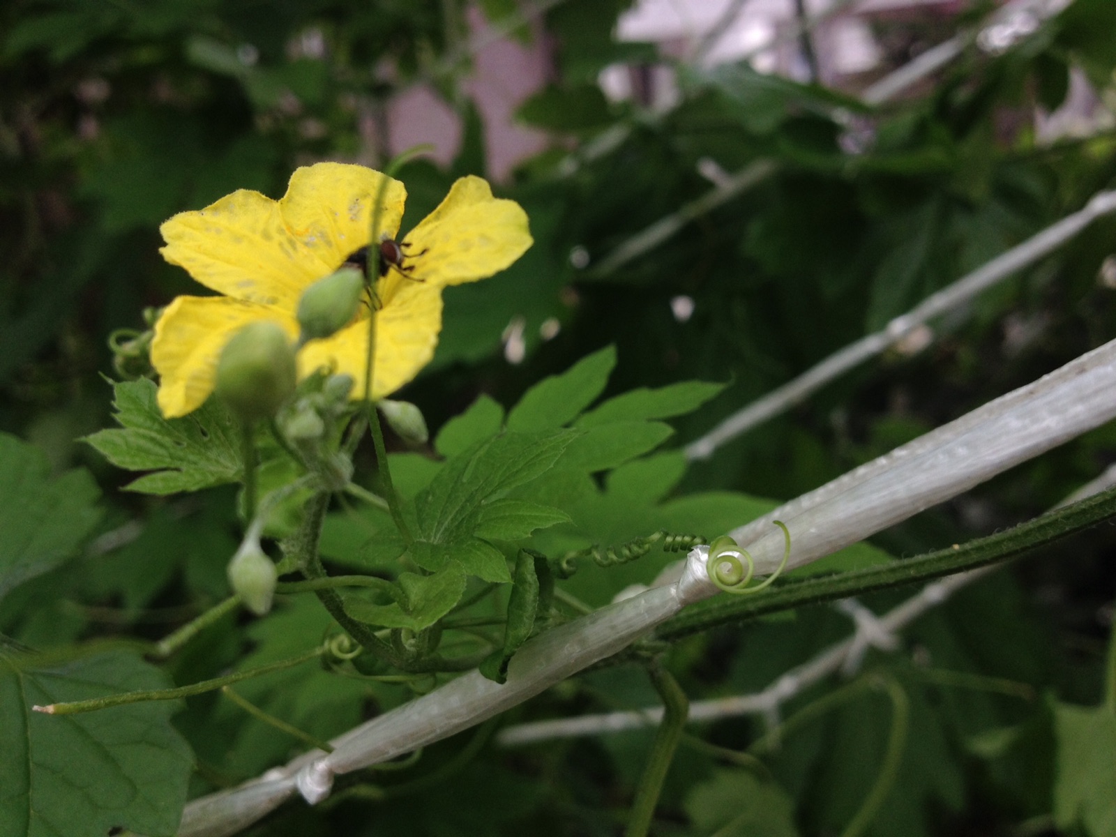 ゴーヤーの花です。 先ほど黒アゲハもひらひら飛んでいましたが、すぐ飛んで行ってしまい撮れませんでした。 Kato