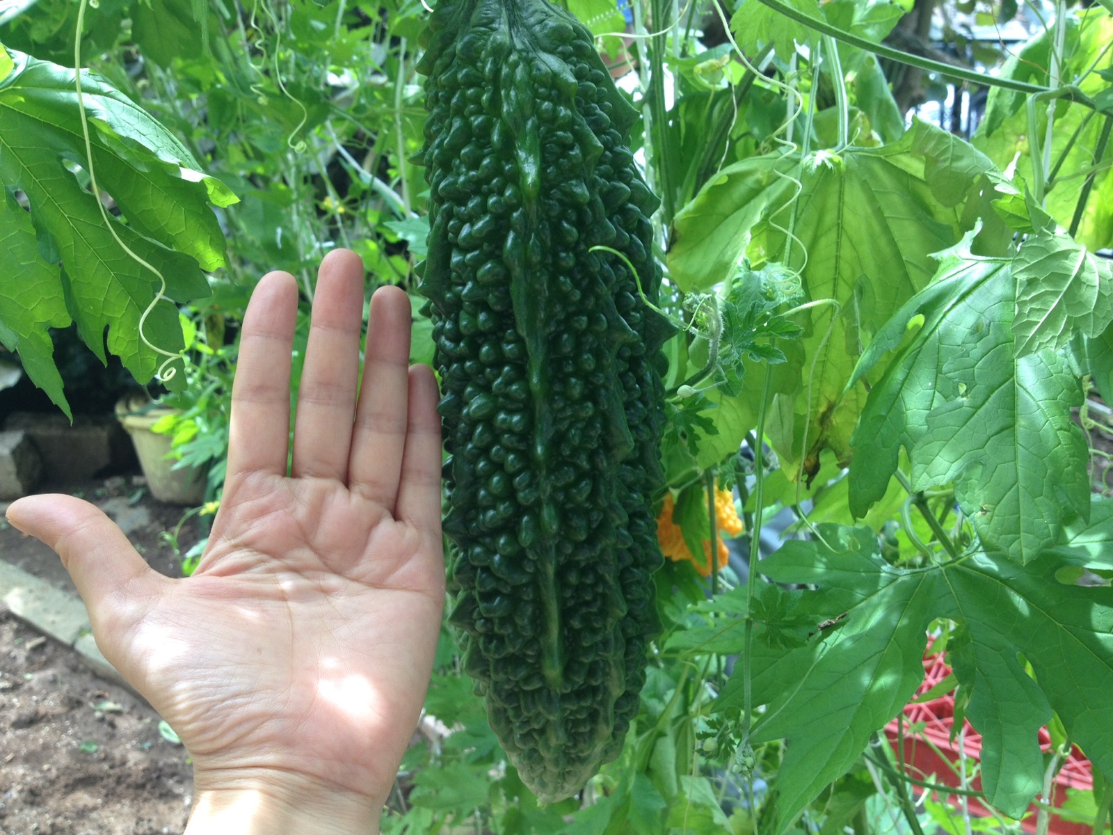 このゴーヤーは採って食べないで種をとるのだそうです。 かなり大きいです。 Kato