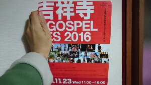 本日、ある音楽スタジオに、11/23の吉祥寺 J GOSPEL FES のチラシを、置いてもらいました! スタジオの人が、「いいですね〜! 吉祥寺ですか! もし行けたら聴きに行きます!」と、言って下さいました! 感謝します!!☆☆☆= Megumi