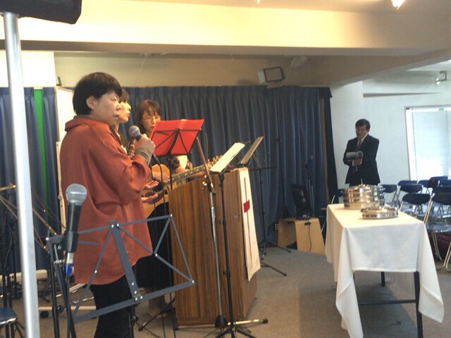 賛美が始まりました! 賛美リーダーは広田さんです。