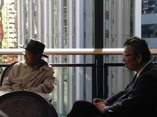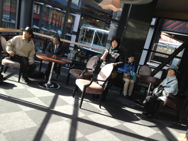 We’re waiting for opening while siting down on the chairs. Thank you.