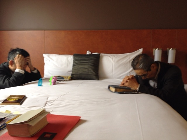 We’ll have a prayer meeting in fifteen minutes in our hotel.