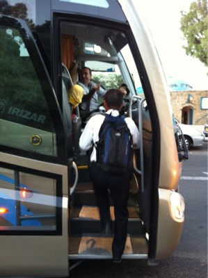 タイムリーに賛美を終えて、神様に拍手をしているとバスがやって来ました!