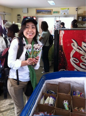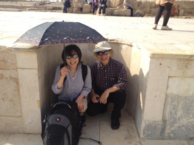 ちょっと狭いですが、日陰を見つけて、すっぽり収まっている弓野牧師ご夫妻!