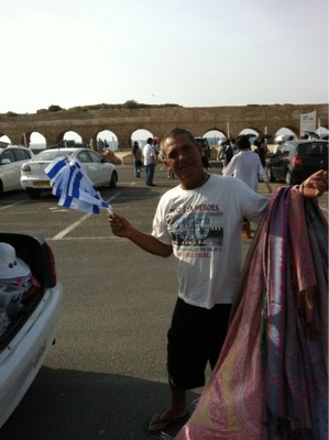 イスラエルの旗を売ってるおじさん。カメラを向けるとポーズを撮ってくれました。(^-^)