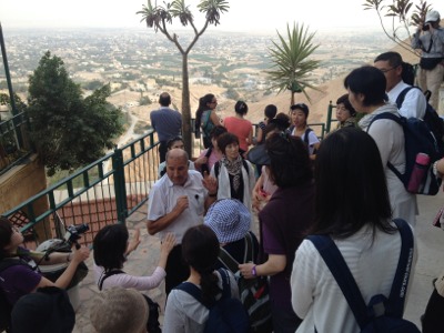 イエス様がサタンに試みられた聖書箇所から、アラブ人ガイドさんが、説明しています。