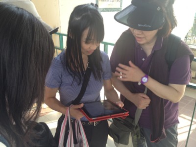 iPadで、ブログをチェックしています。「ホテル組のランチ、美味しそう^_^」