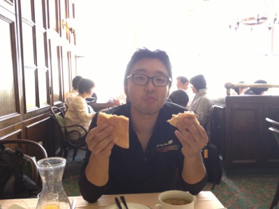 Waiting without meat, he seems to be an oni, Eating pita bread, photographer John!