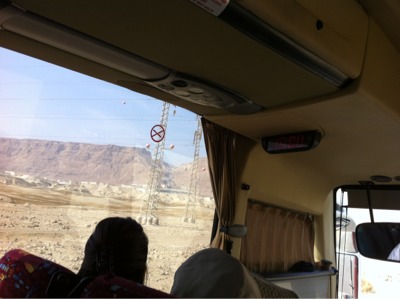 バスの車窓からマサダの絶壁が 見えます。