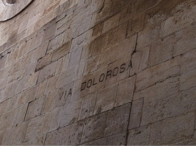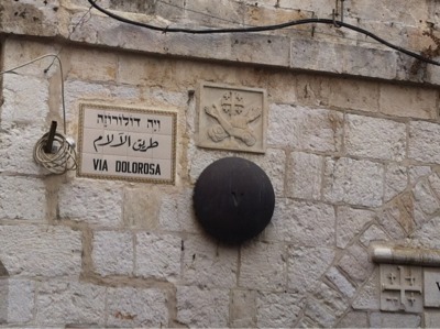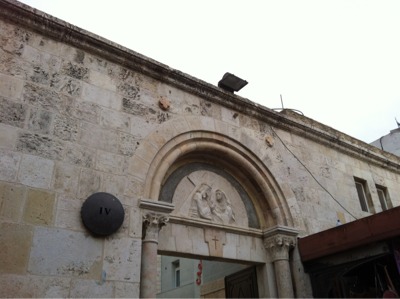 This is the spot that Jesus fell down at the third time. It’s near on the hill of Golgotha. Golgotha means a skeleton in Hebrew.
