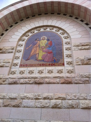 鶏鳴教会の前で、悔い改めている、ケパとペテロです。