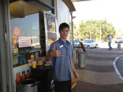 Pastor David Maeda got along with the Napoleon-like object having the former sign p(^_^)q