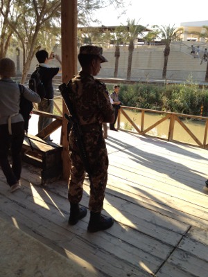 I took this photo at Jordan River in Jordan last year. Israel is about three meters ahead across the river. Soldiers with rifles are watching over. If I try to go across the river by myself, I might be shot.
