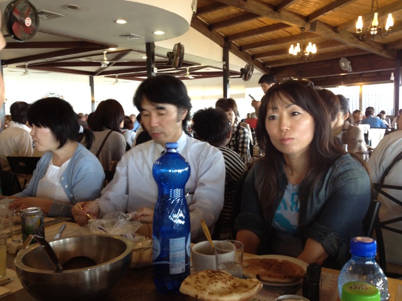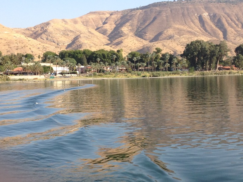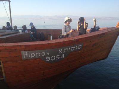 Now we ride in the boat for traveling cruise in the Sea of Galilee.