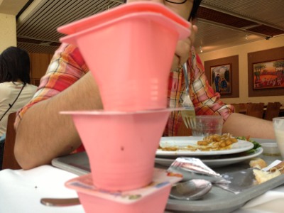I can’t see John because of the tower of yogurt.