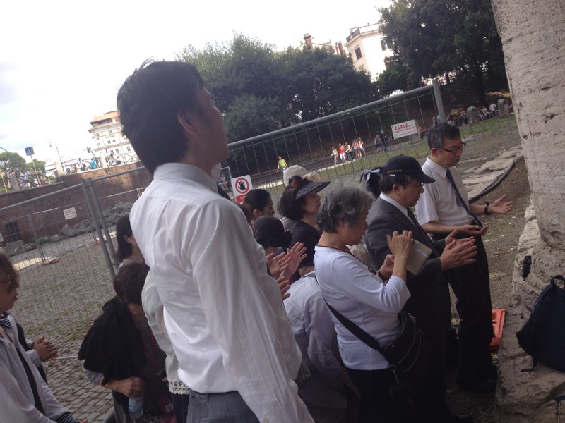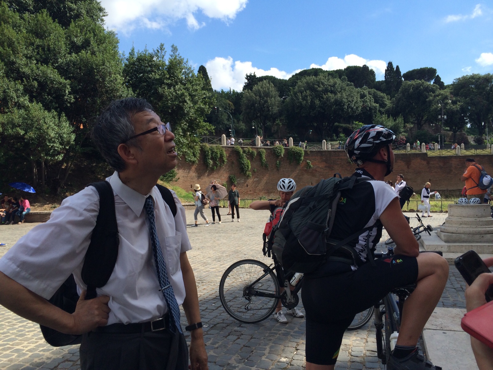 ヘルメットのグループが集まり。我々が休んでる所にも、なぜか?
