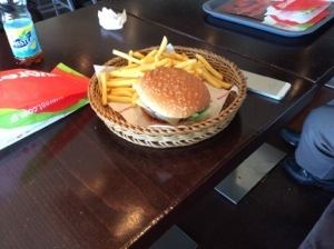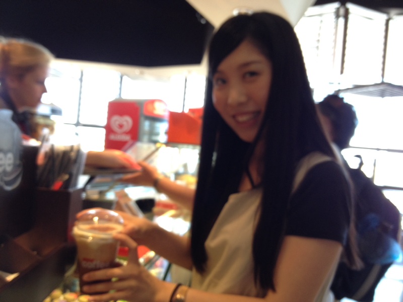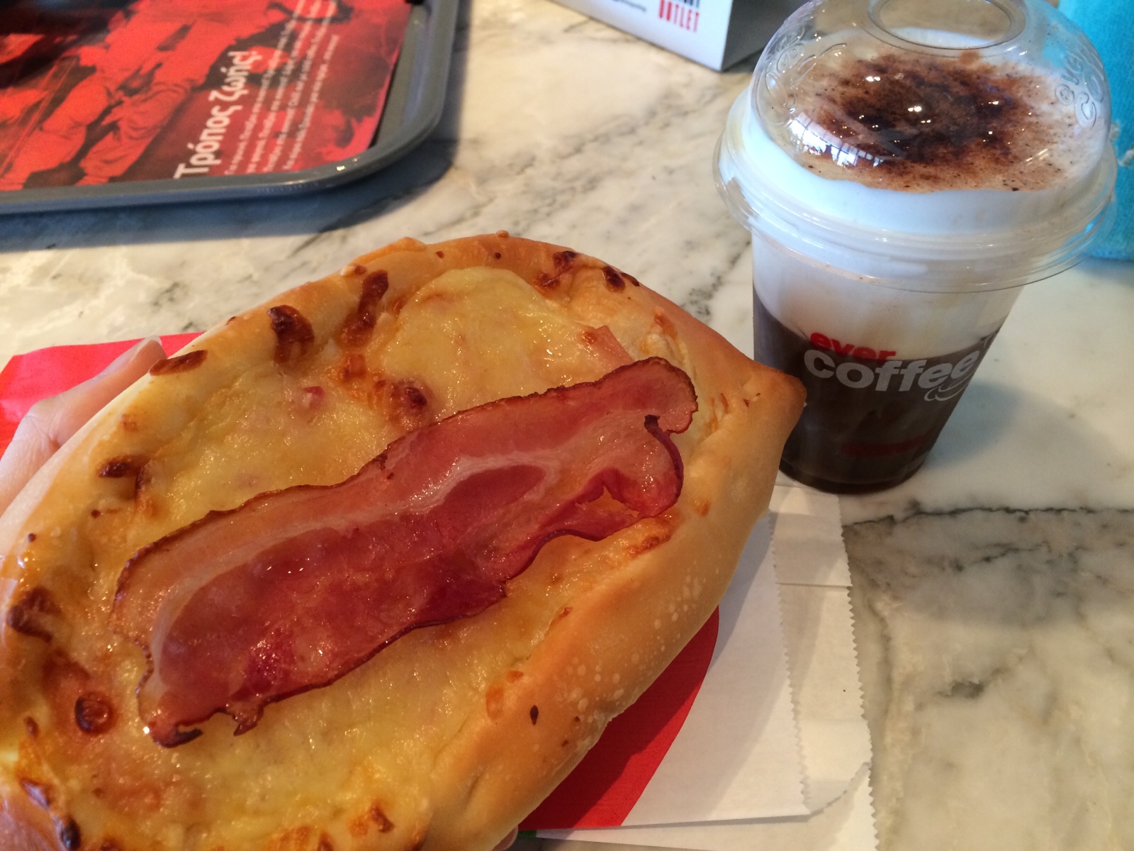 アイスカプチーノと大きいチーズのパン!ガブっと‼︎