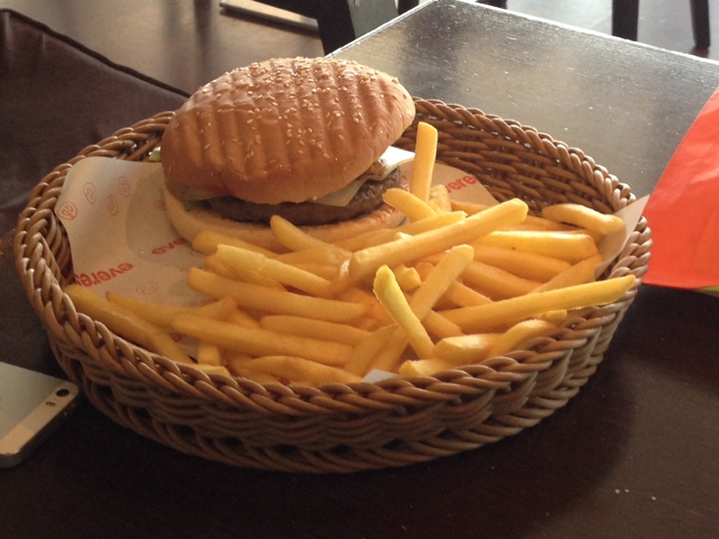 Hamburger and potato in the basket!