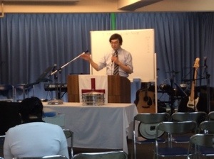 第二礼拝のメッセンジャー、窪田牧師。 「台風8号は巨大台風」と語られています。 「ローマ・パトモスチームが守られて出発できるように。」 と、言われています。