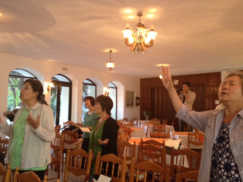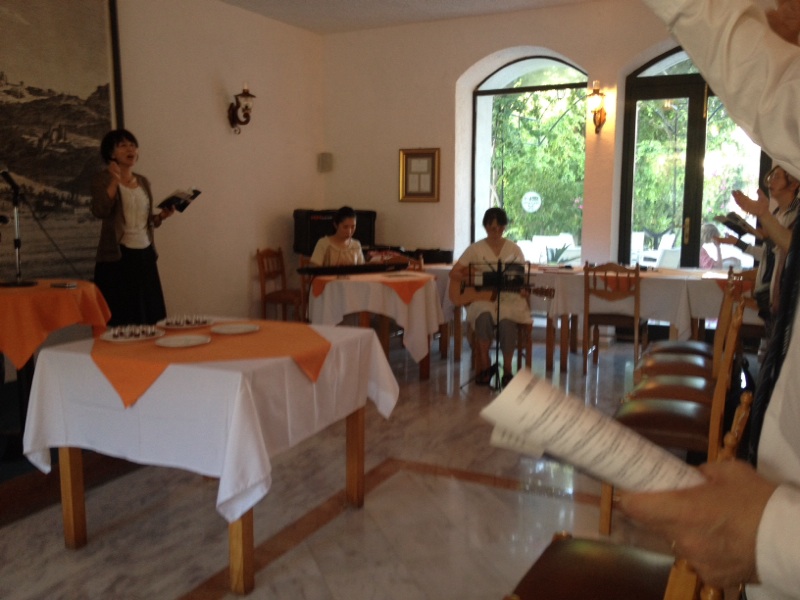 エステル鈴谷牧師チームです。 ♪喜びの歌を賛美しています。