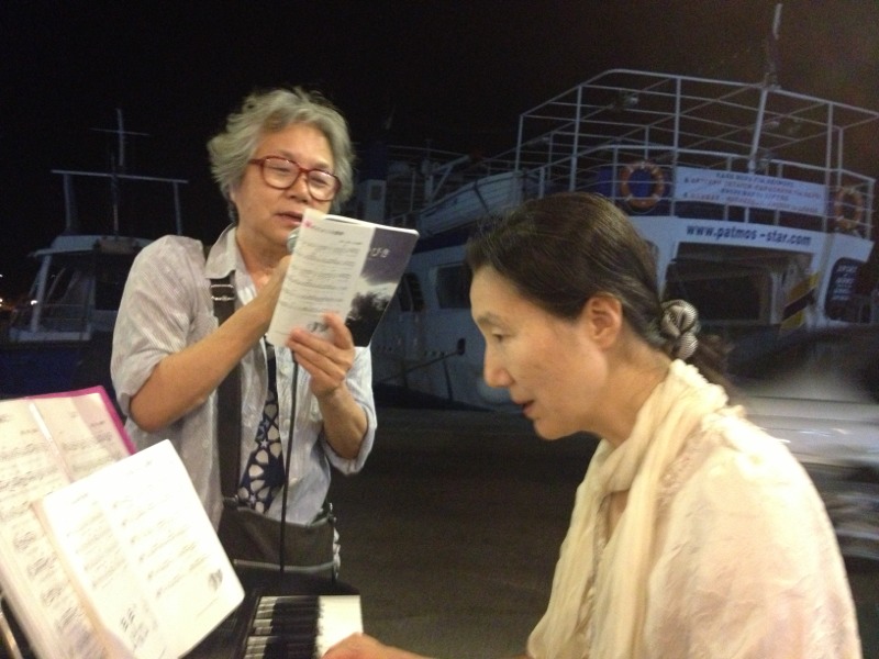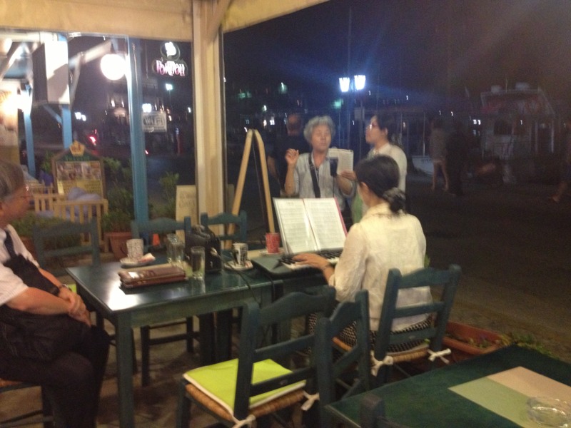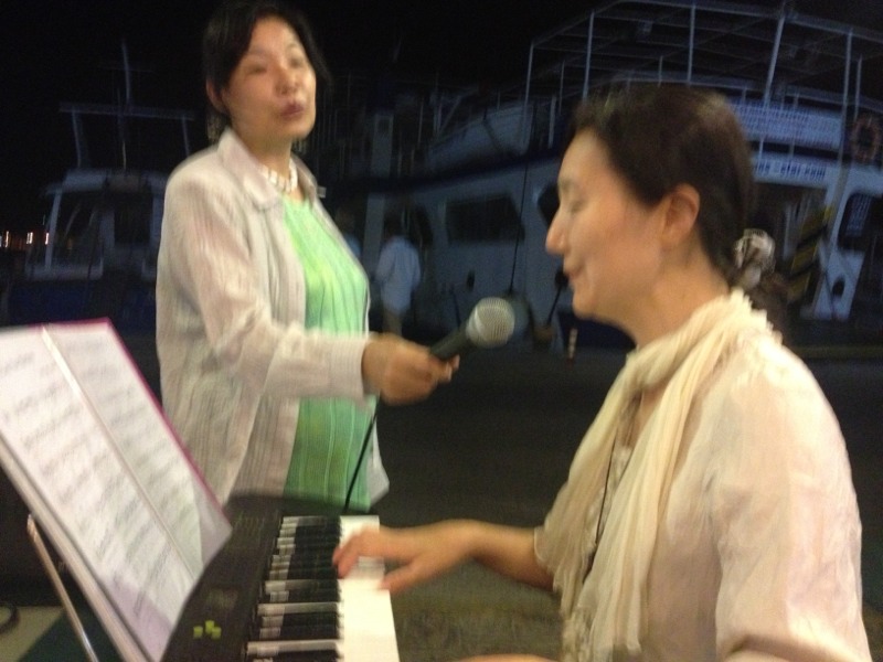 昨日の夜。ピザの美味しいお店で 賛美をしていたのを発見!