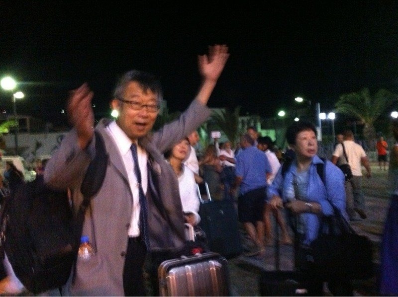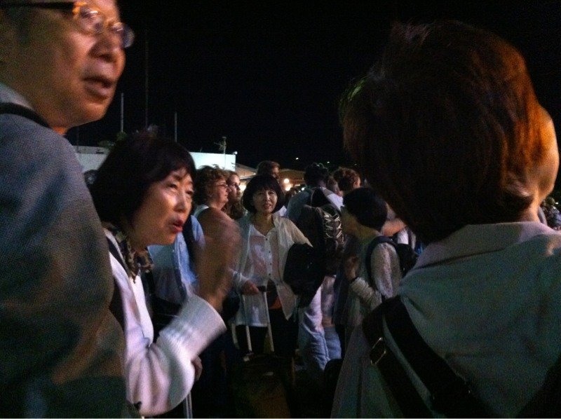 たくさんの人がいっせいに船から降りてきます。それはそれは…すごい数の人!! しっかり人数チェックしてホテルに向かいます