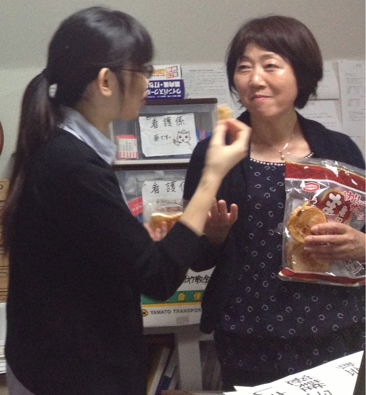 白馬キャンプの入力の引継ぎをしてくださった萱野牧師!と「お祈りしていま〜す」と真理子さん! よろしくお願いします!