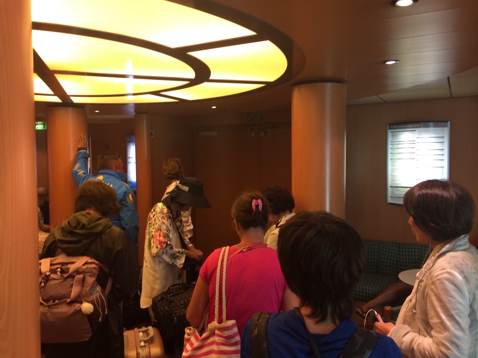チームが船の出入り口に集まってきています。