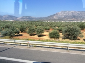 オリーブ畑が見えます。