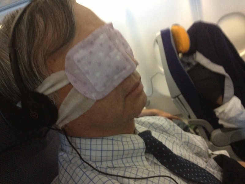 飛行機に、必需品のアイマスク! なかなか優れものです。