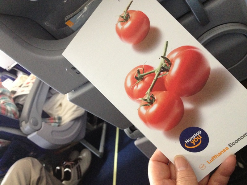 メニュー表です。 離陸直後にいただきました! ドイツ語、英語日本語で書かれています。 ビーフとチキンどちらにしようかな〜?